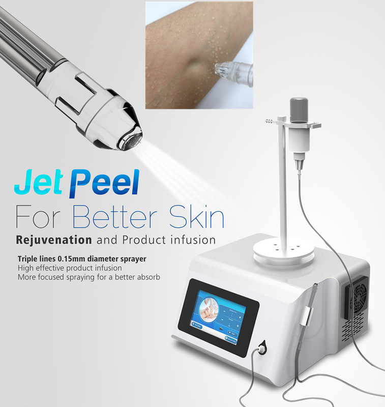 Ένα JetPeel του προσώπου είναι μια μη καταπατητική επεξεργασία που εμποτίζει το δέρμα με ένα προσαρμοσμένο μίγμα των ορών. Λιώνει το οξυγόνο με το υγρό-νερό, αναισθητικό, και ουσία-παραδοθείς βαθιά dermis μέσω ενός ρεύματος υψηλού αερολύματος, ταχύτητα 600 ποδιών ανά δευτερόλεπτο. Το JetPeel διαπερνά το δέρμα χωρίς πραγματική επαφή, που επιτρέπει στο subdermal στρώμα για να απορροφήσει τις θρεπτικές ουσίες που ανατινάζονται σε το.